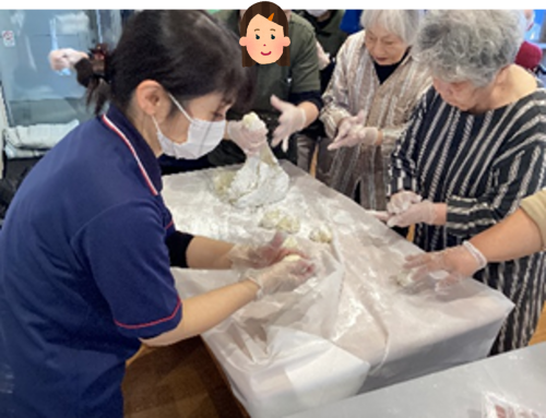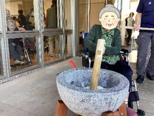 いつも元気な100歳の丸田さんは職員のフォローを振り払って、豪快につきました!!